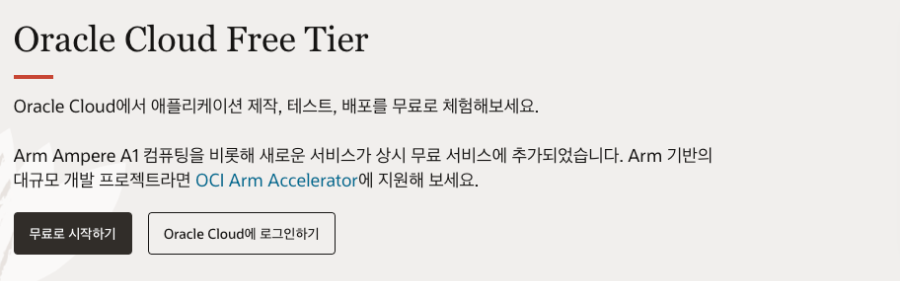 개인프로젝트나 스터디용으로 서버구성을 하려고 여러 Cloud 서비스를 검토하던중 Oracle Cloud에서 제공되는 Free Tier가 정책이나 제공되는 사양이 괜찮다고 생각되어 선택 후 실제로 구성해 보려고
