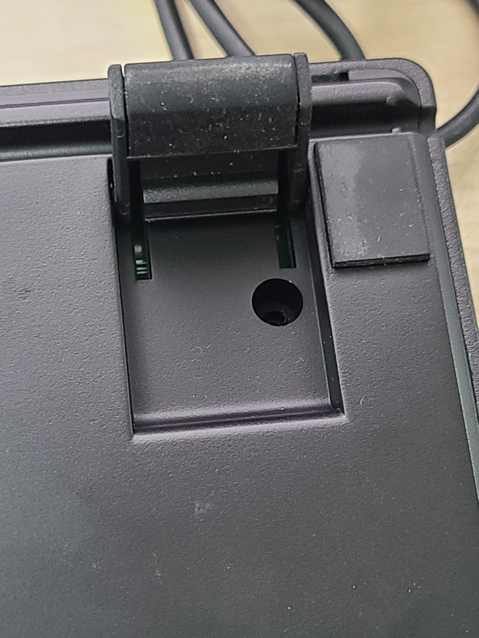 분해는 높이 조절 다리 아래 2곳 가운데 워런티 스티커 1곳 입니다.